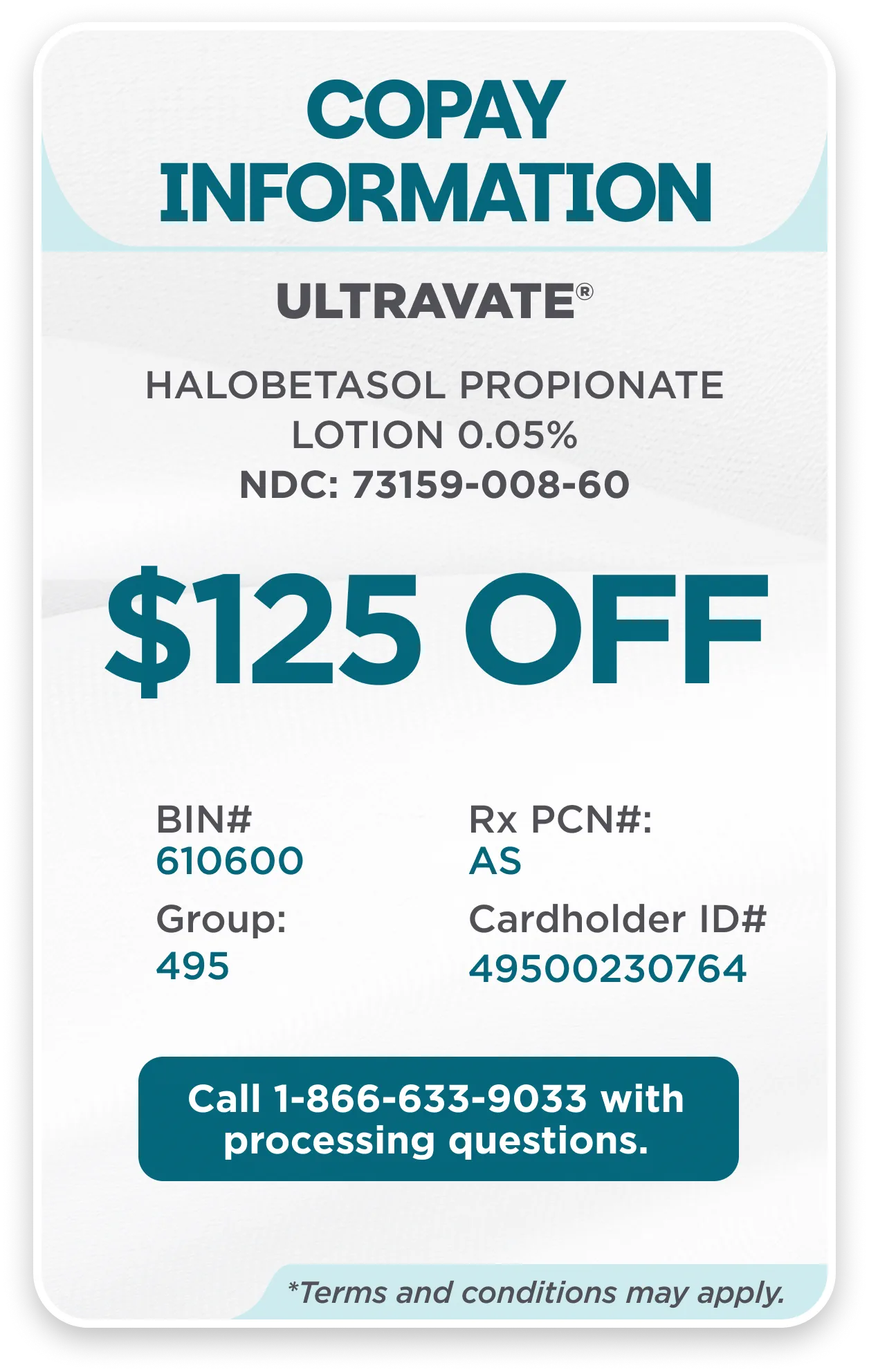 Ultravate lotion is a 0.05% halobetasol propionate topical corticosteroid indicated for the treatment of plaque psoriasis in patients 12 years of age and older.